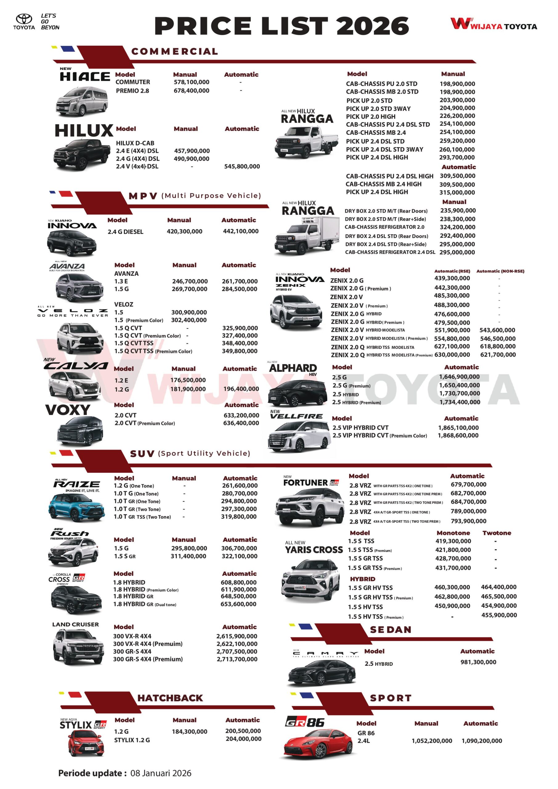 Daftar HARGA TOYOTA BANDUNG JAWA BARAT